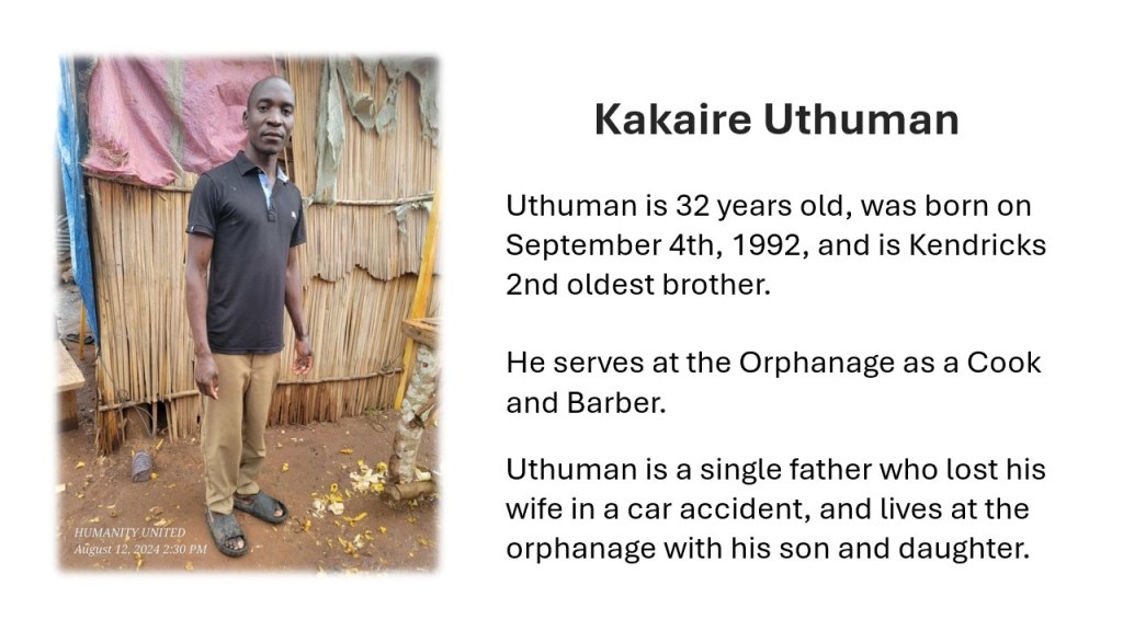 Alongside Kendrick, there are 9 caretakers helping support the children in this community.